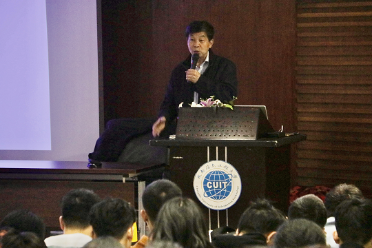 王式功为同学们介绍了大气科学的基本特点,从“身边的民生科学”、“民航与国防的保障科学”以及“与高科技密切相关的科学”三大特点展开讲述。围绕医学气象关注点、哲学基础和新人体舒适度方法研究及应用三方面阐述了大气科学是身边的民生科学。他指出,气象是国防与国民经济建设密切相关的科学,为军事、民航、海洋、交通、能源等建设和发展提供了重要保障,并为同学们一一列举了例子说明气象是与高科技密切相关的科学。他告诉同学们,“做气象事业,既要有高度,还要有广度。”