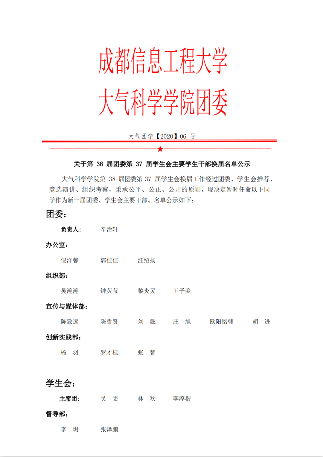 第38届团委第37届学生会主要学生干部换届名单出炉啦