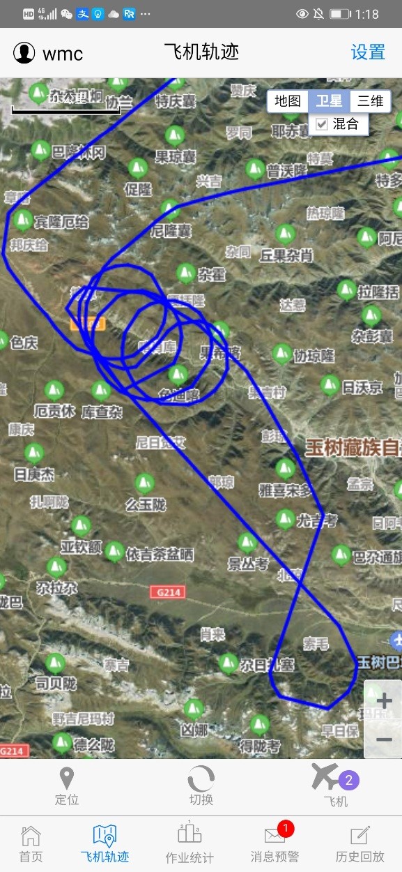 飞机在目标区玉树的飞行轨迹